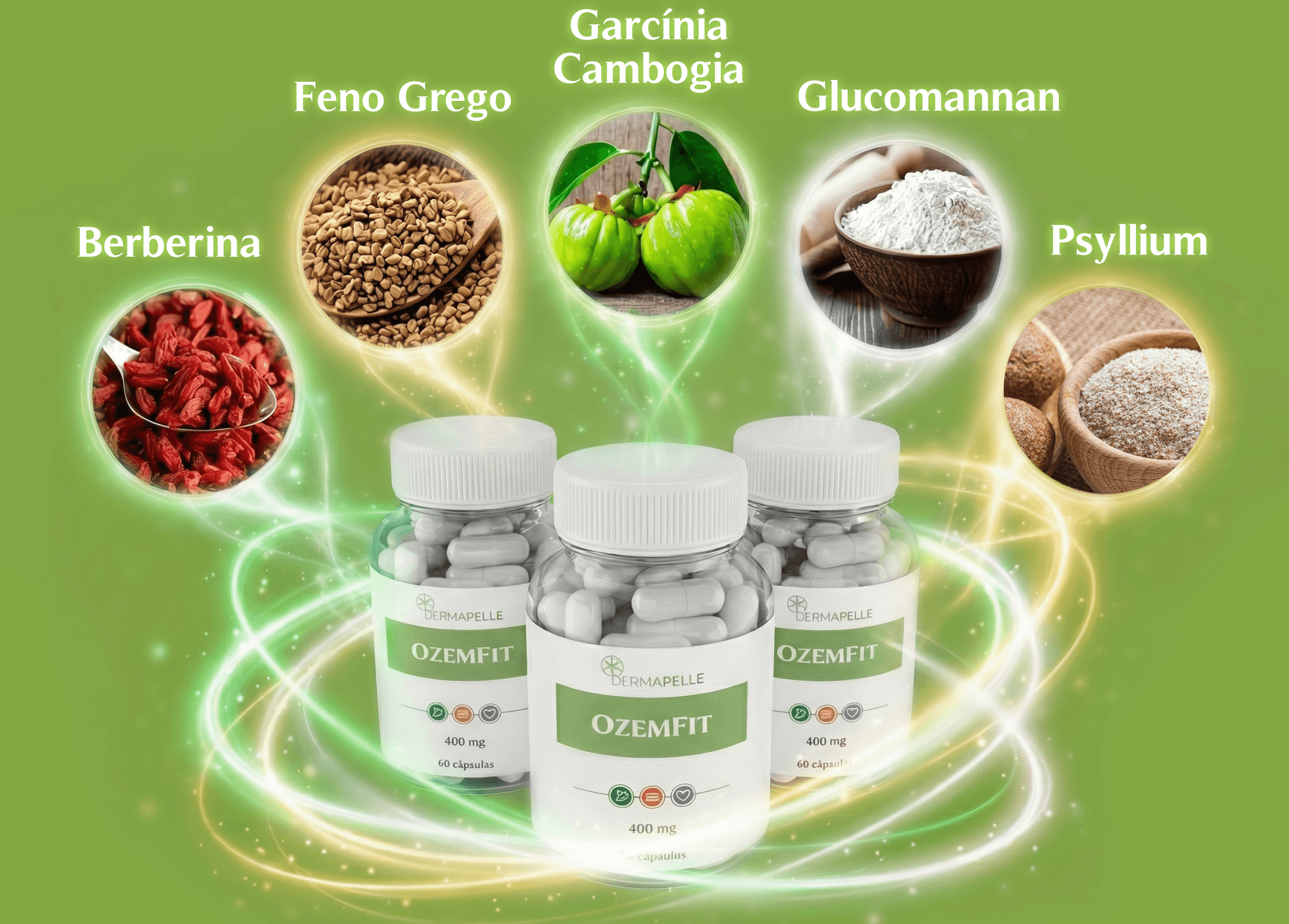 Combo Poderoso Dermapelle: OzemFit controla a fome, Morosil reduz gordura abdominal e Dimpless suaviza celulite. Máxima performance metabólica!